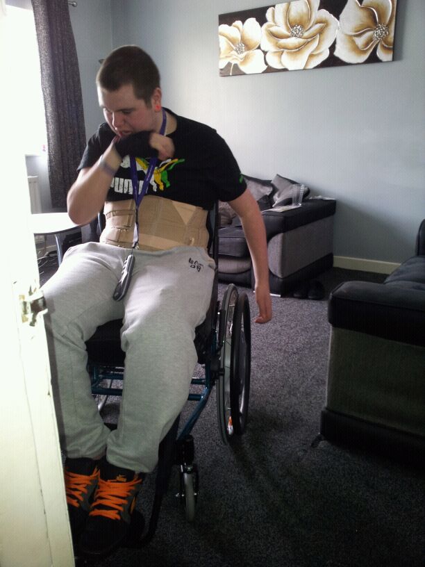 Here's a photo of Nathan in his new chair, hope we can all make it a great day for him on Saturday.